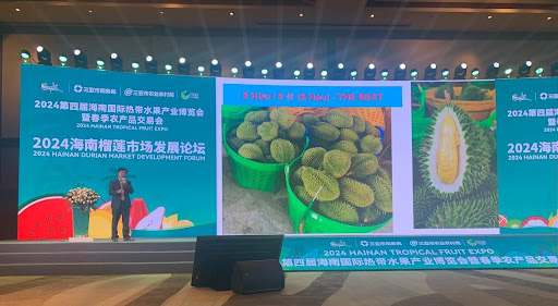 The 4th annual Hainan Tropical Fruit Expo, held at the Mangrove Bay International Convention and Exhibition Center on March 22nd- March 23rd, was a bustling hub of activity and innovation, showcasing tropical fruit production. Among the 115 exhibitors spread across the 6,000-square-meter venue, Song Nam distinctly stood out for its diverse fruit offerings and special fresh durians showcase.